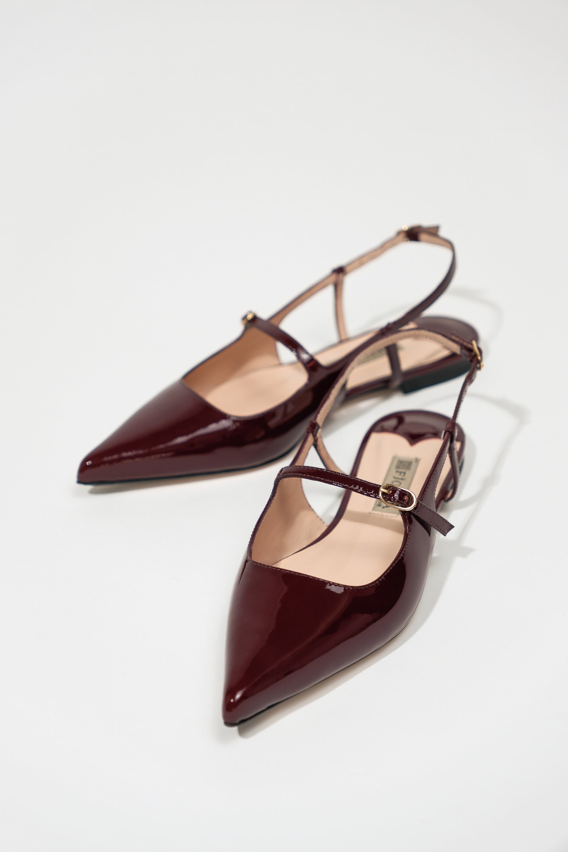 Glazed leather slingbacks